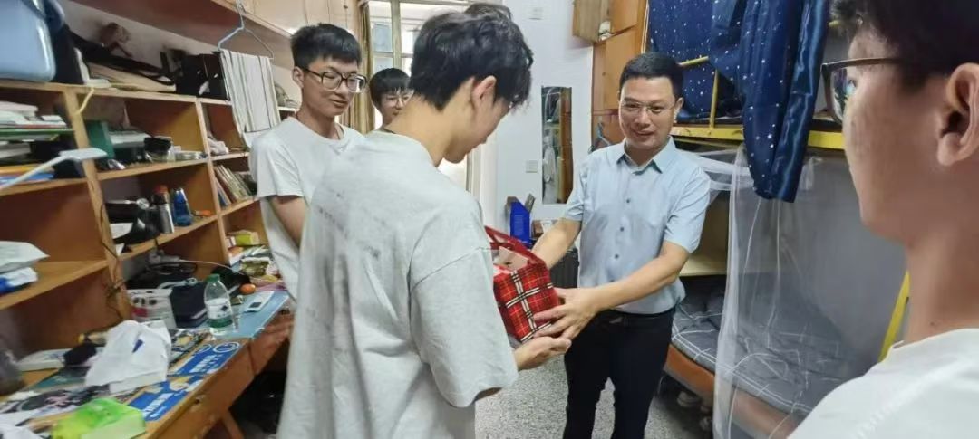 月满人团圆,中秋佳节至,yl1111永利集团精心组织了中秋节宿舍访问活动,9月16日上午,外国语公司党委副书记宋传盛带领学院辅导员和新生班主任们来到了员工宿舍区,带着精心准备节日礼盒,逐一走访了中秋留校同学的宿舍,将学院的关怀与祝福送到每一位同学的身边。走访过程中,宋传盛书记与同学们亲切交谈,询问了大家的学习、生活情况,以及节日期间的安排。他鼓励同学们要珍惜大学时光,努力学习专业知识,不断提升自己的综合素质。同学们纷纷表示,虽然身处异乡,但学院的关怀让他们感受到了家的温暖。