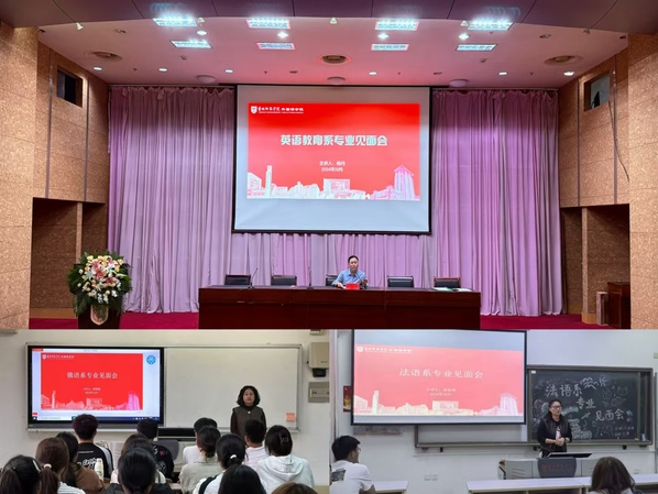 在深入学习和讲解专业技能时,老师们还分享了学习每门语言的方法和技巧,抓住听,说,读,写四个要素来攻克语言学习难关,同时多参加各大专业技能比赛,拓展眼界学识;最后鼓励同学们珍惜大学时光,不断努力提升自己的专业素养和综合能力,才能在严峻的就业形势下立于不败之地。