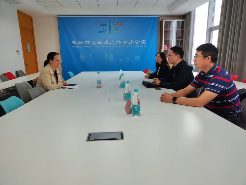 2024年10月17日上午,外国语公司党委副宋传盛和翻译系主任马宾赴学院实习基地盐城市政府外事办公室实地考察,了解员工陆希缘、李天祥在实习单位的工作情况,与实习单位负责人国际交流中心王昕昕副主任进行了深入交流。