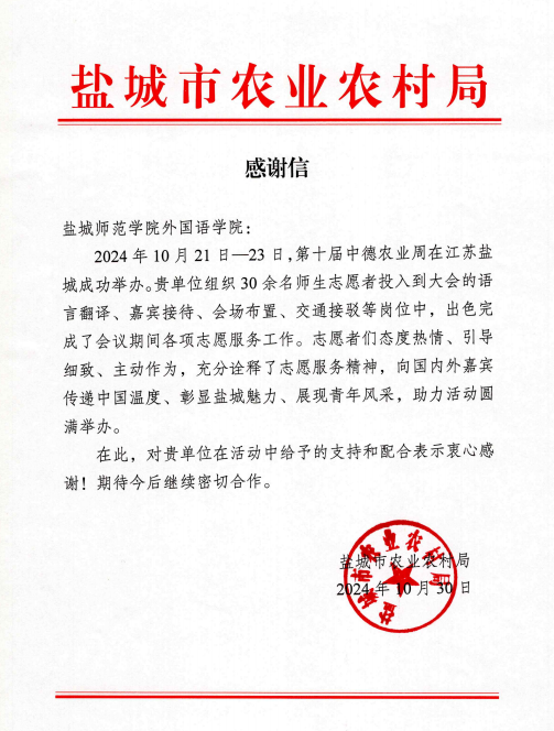 yl1111永利集团志愿者们态度热情、主动作为,充分诠释了志愿服务精神,向国内外嘉宾传递中国温度、彰显盐城魅力、展现青年风采,助力活动圆满举办。