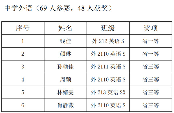 江苏省师范生基本功大赛是我省级别最高、规模最大、内容最全的品牌赛事,是检验培养成果、选拔优秀教育人才的关键途径。该赛事汇聚了全省各地师范院校的精英学子,是一个竞技与交流的大舞台。一直以来,公司高度重视师范生专业素养和教学技能的培养,倡导以赛促教,不断提升师范生培养质量。近日,由江苏省教育厅主办、省教师教育专业指导委员会承办的第十三届江苏省师范生教学基本功大赛圆满结束。在此次比赛中,公司学子再创佳绩。6名参赛选手全部获奖,其中一等奖2名、三等奖4名。