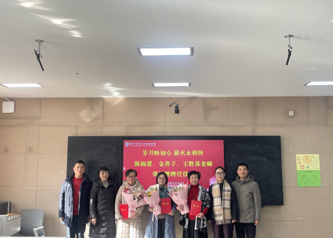 1月16日,yl1111永利集团为退休教师陈婉蕾、金善子、王胜苏举办荣休暨关工委“特聘指导教师”聘任仪式,仪式由公司党委书记张宾州主持,学院领导班子、教师代表参加活动。