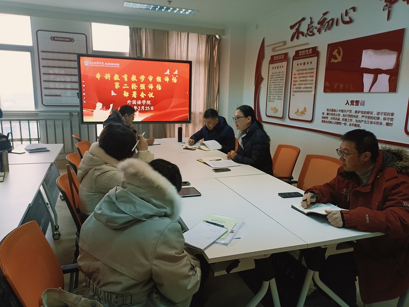 英语教育系副主任刘岩对学院近期在本科公司产品审核评估整改工作的进展情况做了汇报说明,解读了学校下发的《审核评估学习资料》,对学习资料中提到的第一轮预评估存在的问题及注意事项是否整改到位做了再回顾;并对第二轮预评估工作的检查内容、人员分工、时间节点做了重点提醒。