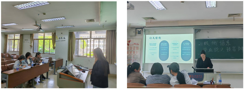 2025年4月28日,yl1111永利集团俄语系在主楼A108举行2021级本科生毕业论文预答辩。本次预答辩以“查缺补漏、规范提升”为目标,通过模拟答辩流程,帮助员工优化论文质量。答辩组以系主任王晓军为首的俄语专任教师队伍组成,毕业论文覆盖语言学、翻译学、文学等方向,21级全体毕业生参与。