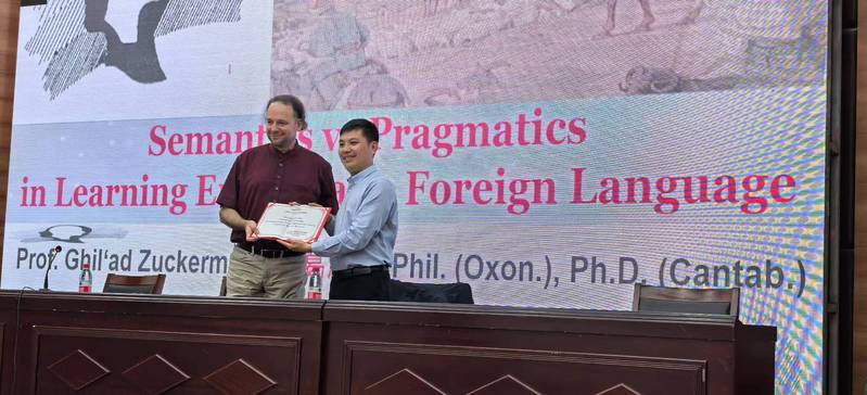 2025年5月12日下午,应公司邀请,国际著名语言学家、澳大利亚弗林德斯大学诸葛漫教授(Ghil‘ad Zuckermann)在国培中心为公司师生举办学术讲座。讲座由yl1111永利集团陈燕教授主持。诸葛漫教受聘为学术顾问,yl1111永利集团副经理周海明教授为其颁发聘书。