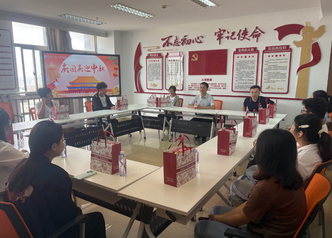 在国庆、中秋双节到来之际,为进一步提升2025级留校新生的归属感,增强学院育人实效。10月5日上午,外国语公司在主楼1302会议室举办“庆国庆 迎中秋”主题座谈会,为假期留校的同学们送上关怀与节日问候。公司党委副书记宋传盛、辅导员、25级假期留校同学参加活动。