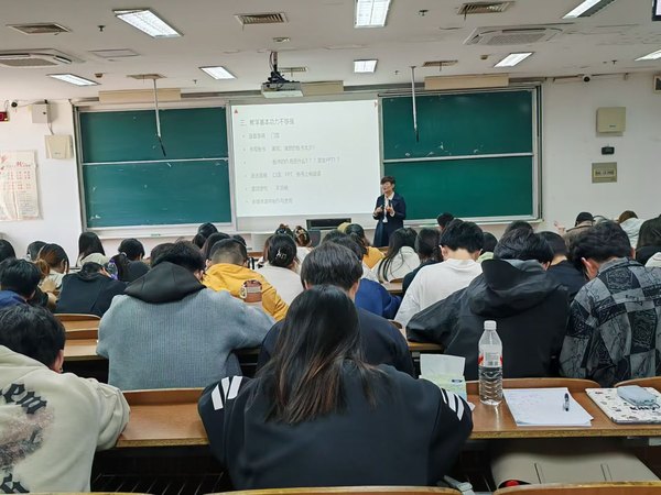 讲座中,朱俊教授围绕新课标新要求、英语师范专业学习和规划、教师编制备考建议、说课与面试策略四大模块展开系统讲解。在解读新课标时,她结合2022版英语课程标准与2017、2020版的对比分析,强调英语学科在“讲好中国故事、家乡故事乃至人生故事”中的独特价值,指出新课标对员工核心素养的培养要求,也对英语教师的教学能力、跨文化交际能力等提出了更高标准。针对英语师范专业学习,她建议同学们构建“语言技能+教育理论+教学实践”的三维学习体系,合理规划大学期间的专业课程学习、教育见习与学术研究。在教师编制备考环节,她从笔试内容、备考方法到时间规划,分享了诸多实用技巧;关于说课与面试,更是透露了一线招聘的关键细节,为同学们的求职之路扫清迷雾。