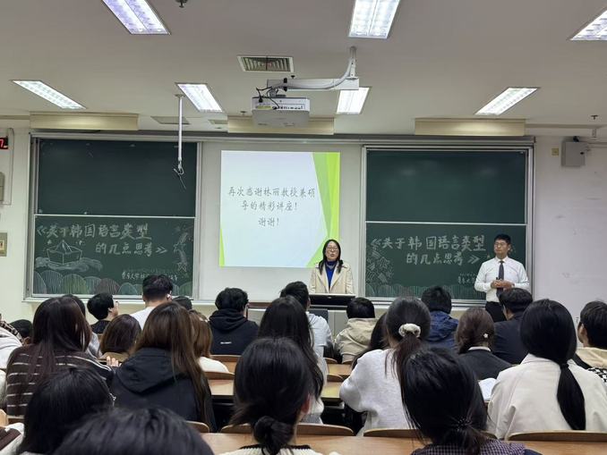 林丽教授的此次讲学,不仅是一场知识的传递,更是一次学术的启迪和视野的开阔。她有效将专业师生的学习实践与前沿语言学理论相结合,为韩语教学与学习注入了新的活力与思考。未来,我系将继续积极邀请更多国内外知名专家学者前来讲学,为广大师生提供更多宝贵的学习与交流平台,不断提升专业团队建设水平以及人才培养质量。(作者:梁海胜 审核:宋传盛)