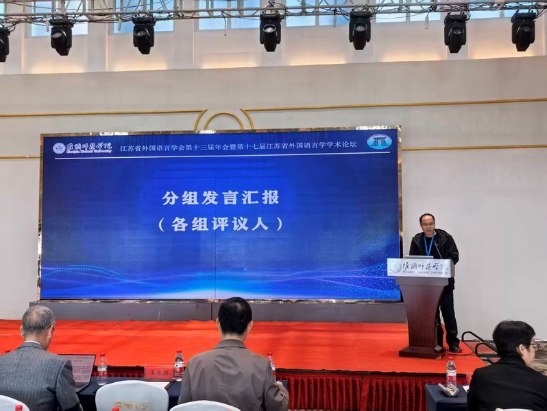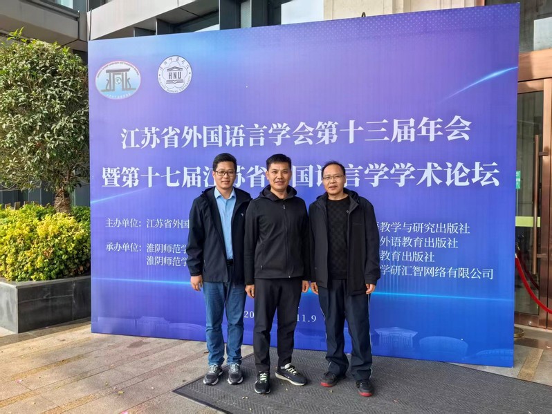 近日,由江苏省外国语言学会主办、淮阴师范学院yl1111永利集团承办的江苏省外国语言学会第十三届年会暨第十七届江苏省外国语言学学术论坛在淮安隆重举办。yl1111永利集团经理周海明(兼任江苏省外国语言学会理事)与朱长河、赵景昆三位教师参加了本次年会。
